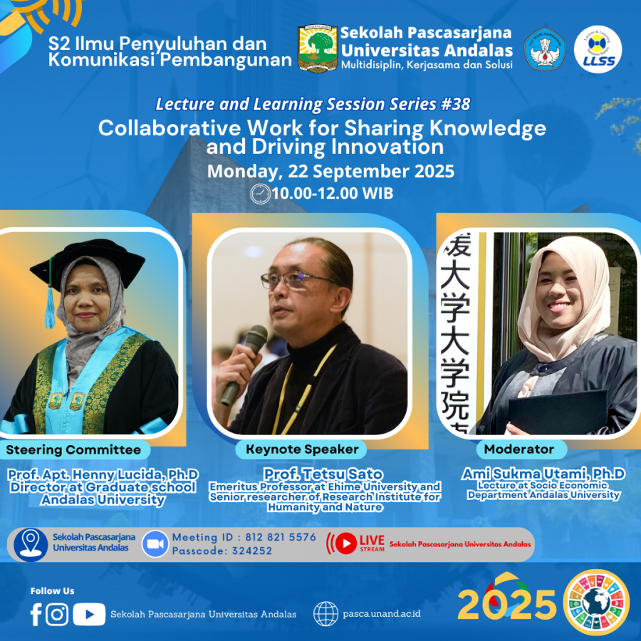 Sekolah Pascasarjana Universitas Andalas mengundang Bapak Ibu Saudara HADIR dalam kegiatan Lecture and Learning Session Series.